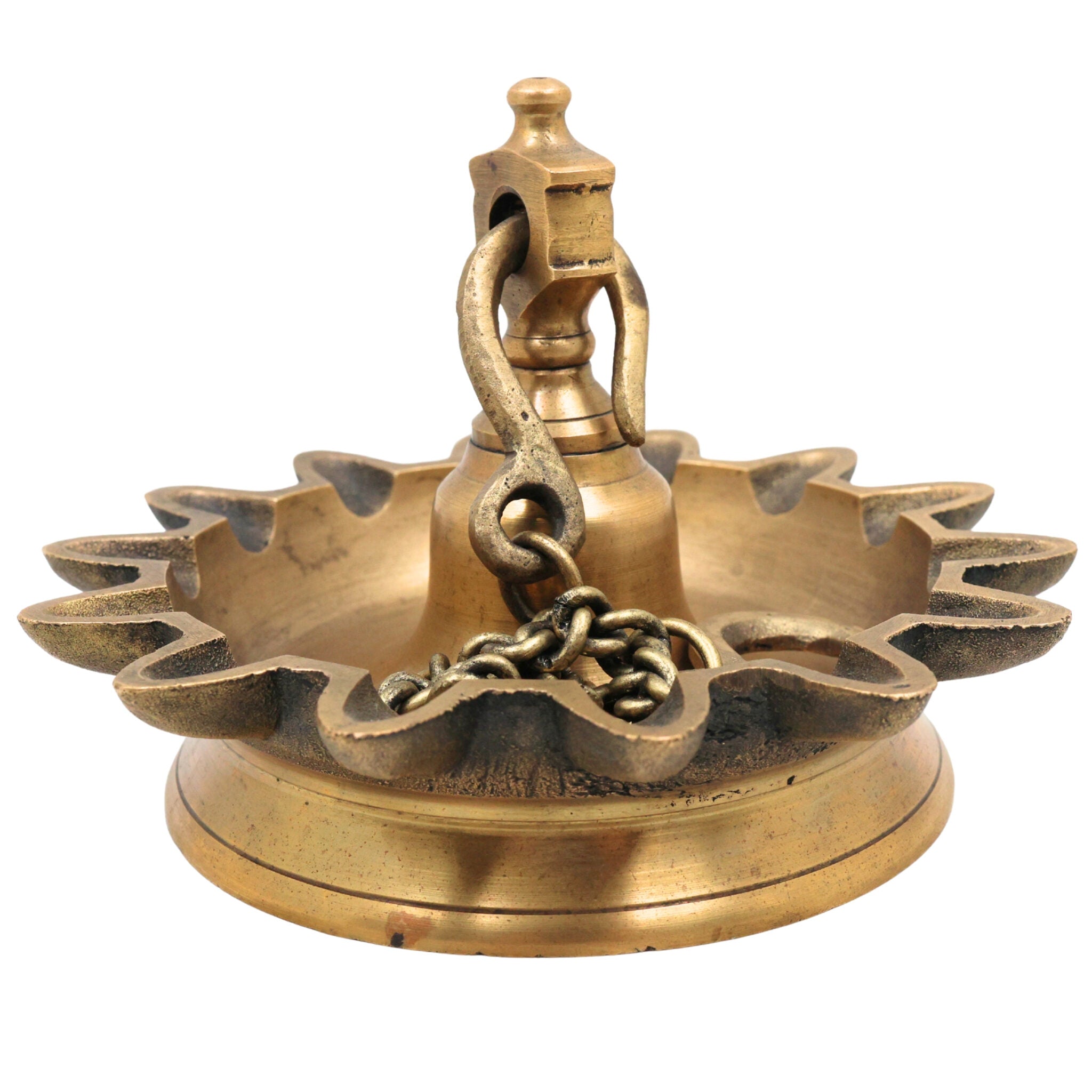 Brass Hanging Lamp, Diya, Lamps, Deep, Deepam For Home Décor With 14 Face