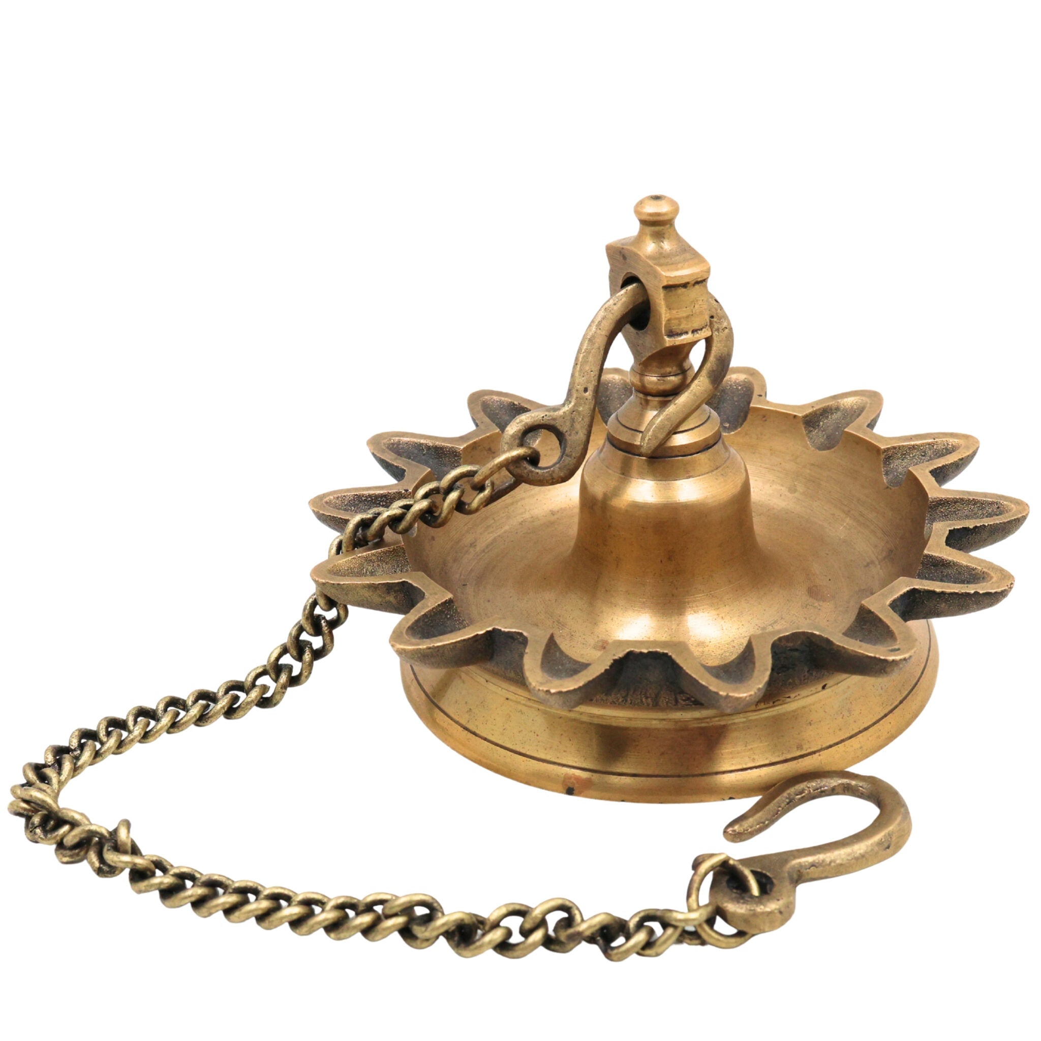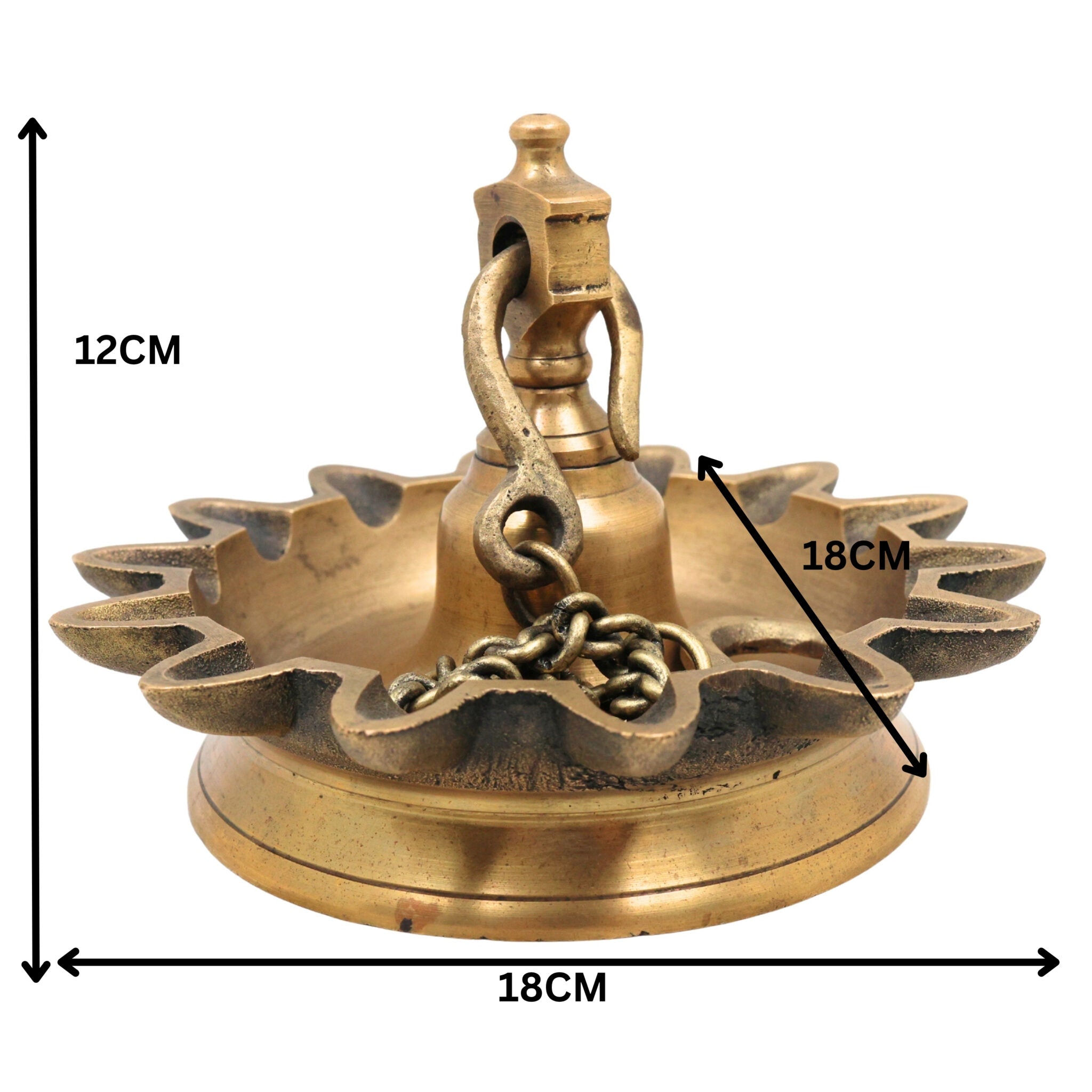 • Type: Brass Hanging Temple Lamp With 14 Face/ Pooja Diya / Decorative Ceiling Lantern / Suspended Brass Light