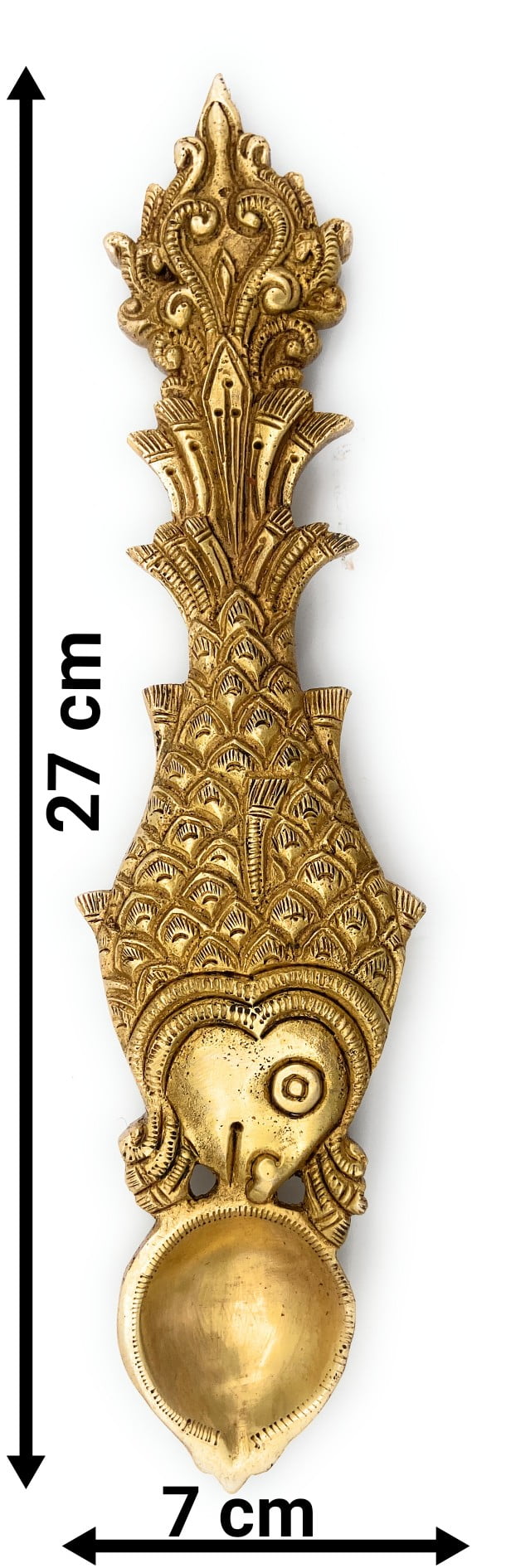 Brass Aarthi Lamp for Lakshmi Murugan Temple, Handcrafted Kuthu Vilakku Puja Deepam, Pital Oil Diya for Pooja, Gold, 11 Inch, 1 Piece