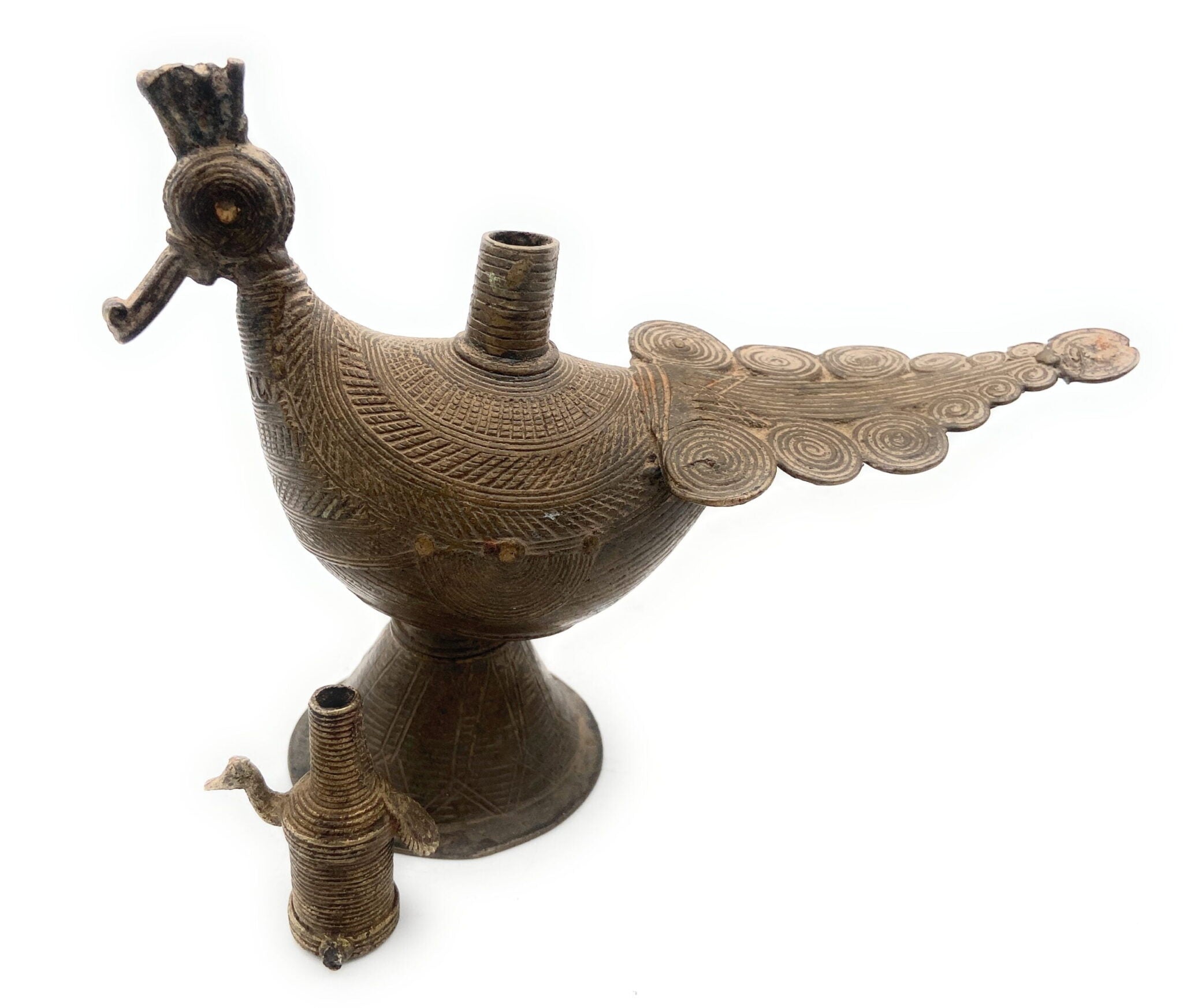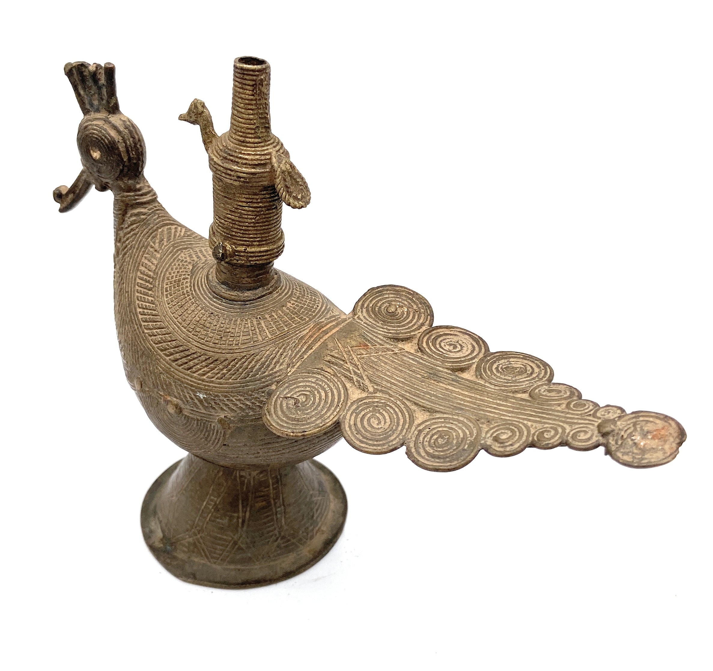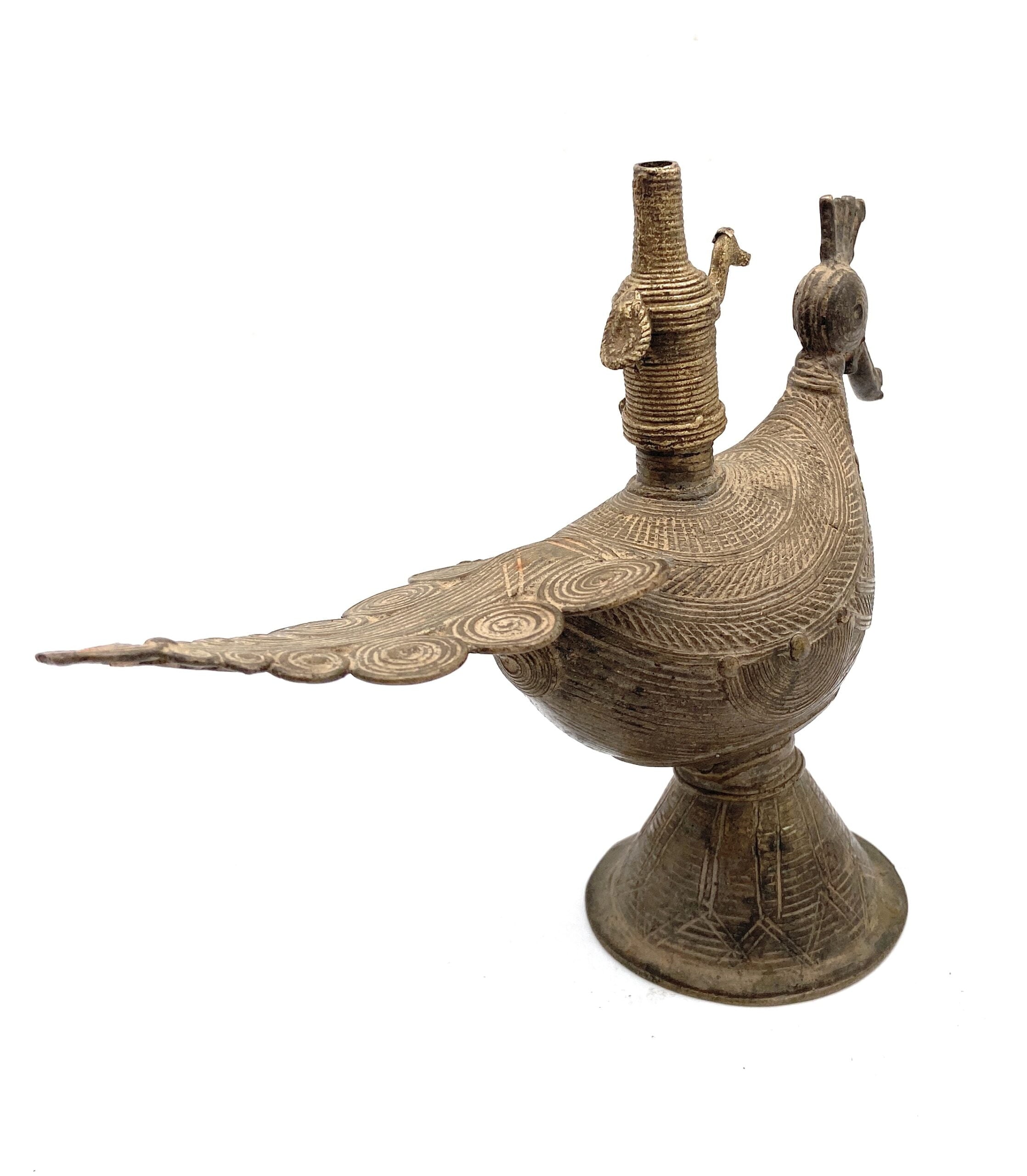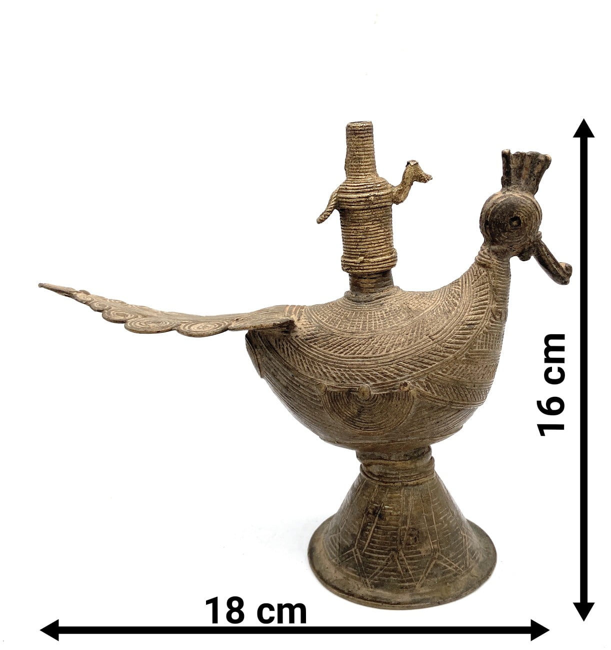 Clean gently with warm water, using lemon, tamarind, or Pitambari powder to maintain its original brass shine and antique texture.