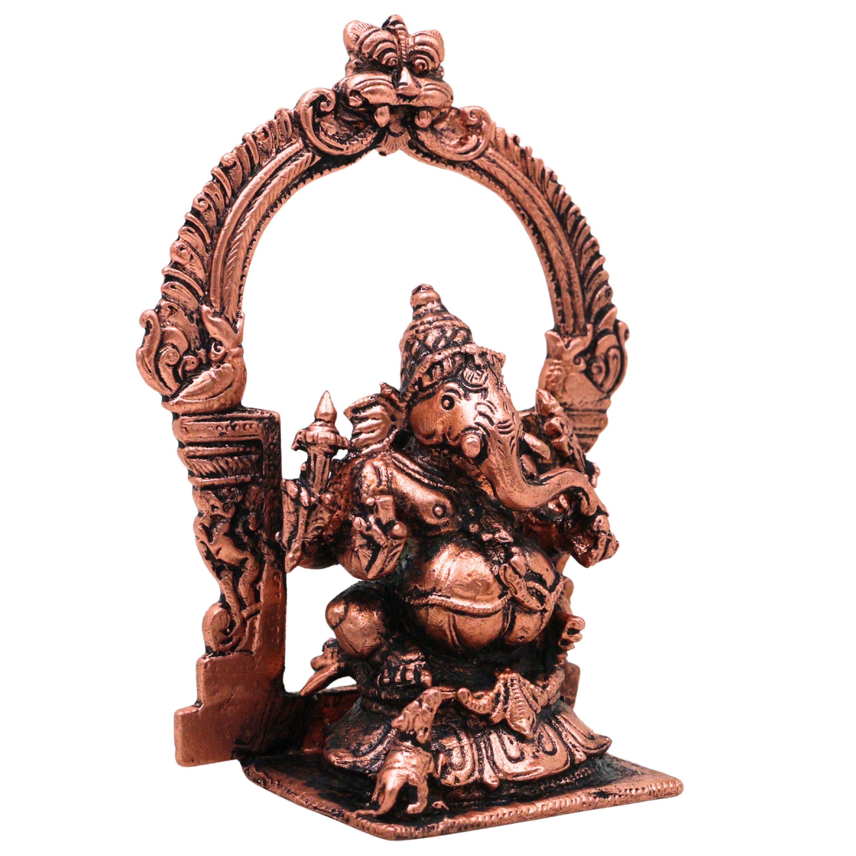 Copper Ganesha Idol, Tamra Ganapati Vinayaka Vighneshwara Gajanana Siddhivinayak Murti for Home Temple Puja Decor, Brown, 4 Inch, 1 Piece
