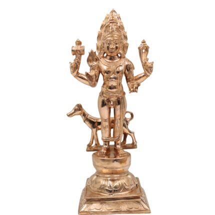 Bronze Ekapada Bhairava Idol | One-Legged Bhairav Statue | Panchaloha Handcrafted Chola Art Murti for Puja & Home Decor, Brown, 10.5 Inch, 1 Piece