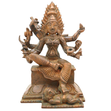 Bronze Mahakali Idol, Kali Mata, Bhadrakali, Chamunda Murti, Panchaloha Deity Sculpture, Handmade Chola Art for Temple & Home Decor, Brown, 9.5 Inch, 1 Piece