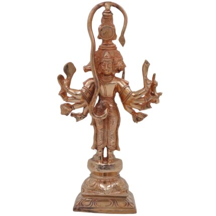 Bronze Panchamukhi Hanuman Idol | Five Faced Anjaneya Bajrangbali Murti | Panchmukhi Veer Maruti Sculpture for Home Temple Pooja Decor, Gold, 11 Inch, 1 Piece