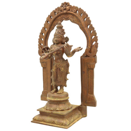 Handmade Bronze Saraswati Idol | Panchaloha Goddess Statue Sharada, Vani, Veena Pustak Dharini Murti for Home, Temple & Office Decor,Brown, 11 Inch, 1 Piece