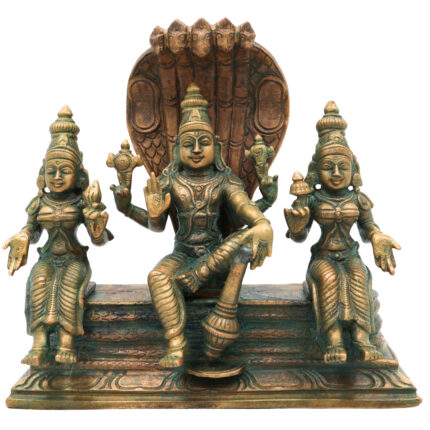 Handcrafted Panchaloha Bronze Padmanabha Idol – , Anantha Padmanabha Murti, Chola Art South Indian Vishnu Statue for Temple & Home Pooja,Brown, 10.5 Inch, 1 Piece