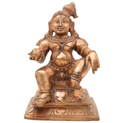 Handcrafted Bronze Bal Gopala Idol | Panchaloha Laddu Krishna Statue | Bala Krishna Murti | Kanha Kanhaiya Murti | Chola Art Krishna Figurine,Brown, 6.5 Inch, 1 Piece