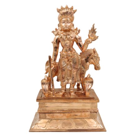 Bronze Aiyanar Swamy Idol | Panchaloha Dharma Shasta Silai | Handcrafted South Indian Kaval Deivam Sculpture, Gold, 9.5 Inch, 1 Piece