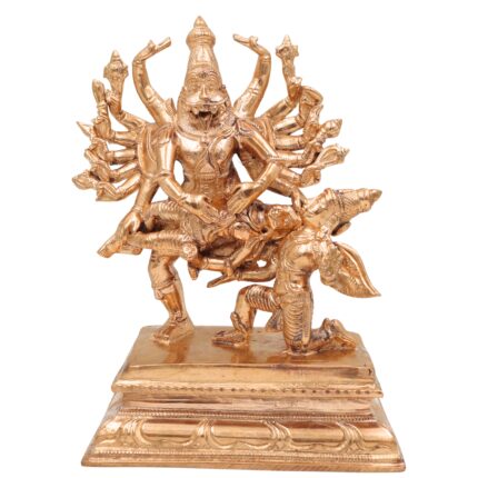 Handcrafted Ugra Narasimha Killing Hiranyakashipu Idol in Panchaloha Bronze – Lord Narasimha Swamy Moorthy | Narasimha Avatar Murti | Chola Art Sculpture, Gold, 7 Inch, 1 Piece