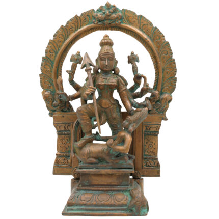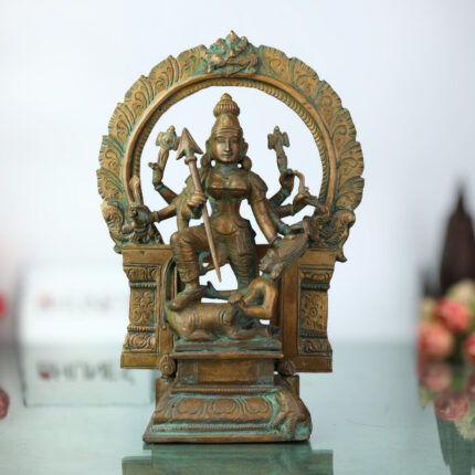 Handcrafted Brass Durga Devi Idol with Prabhavali – Mahishasura Mardini | Shakti | Chamundeshwari | Antique Finish for Pooja, Home Temple & Decor,Gold, 8 Inch, 1 Piece