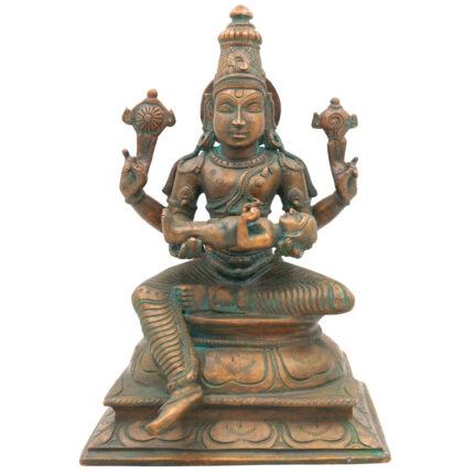 Bronze Parvati Idol Sitting – Panchaloha Shivagami Murti | Adi Shakti Sculpture | Handcrafted Bhoga Shakti Girija Statue, Brown, 6.5 Inch, 1 Piece