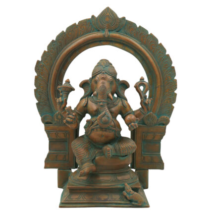 Bronze Handcrafted Ganesha Idol with Prabhavali | Panchaloha, Kansa, Chola Art Ganapati Murti for Pooja & Home Decor, Brown, 3 Inch, 1 Piece