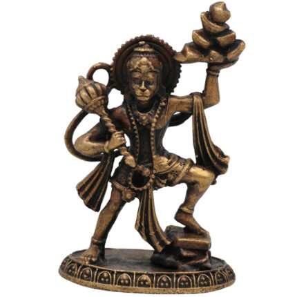 Brass Hanuman Idol, Pital Anjaneya Murti, Bajrangbali Sanjeevini Mountain Statue, Mahaveer Pavanputra Vigraha, Handcrafted Ram Bhakt Hanuman Moorti for Pooja Home Decor, Gold, 2 Inch, 1 Piece