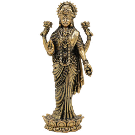 Brass Lakshmi Idol, Mahalakshmi Murti, Shri Devi Statue, Padmavati Vigraha, Kamala Pratima, Handcrafted Home Pooja & Decor, Gold, 6 Inch, 1 Piece