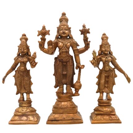 Bronze Vishnu with Sri Devi & Bhu Devi Idol | Handcrafted Murti Set for Pooja, Temple & Home Decor, Brown, 6 Inch, 3 Piece