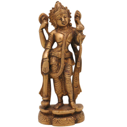 Brass Vishnu Idol | Narayana Murti | Govinda Moorti | Keshava Pratima | Handcrafted Pooja Statue for Home Decor & Gifts, Gold, 5.5 Inch, 1 Piece