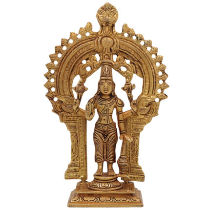 Brass Vishnu Idol with Prabhavali | Narayana Statue | Balaji Murti | Govinda Vigraha | Srinivasa Sculpture | Padmanabha | Ranganatha | Lakshminarayan Brass Pooja Idol for Home & Temple Decor,Gold, 8 Inch, 1 Piece