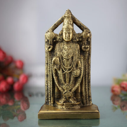 Brass Venkateswara Idol | Balaji Murti | Srinivasa Statue | Narayana Vigraha | Vishnu Brass Idol | Temple Pooja Decor | Spiritual Gift Showpiece, Gold, 8 Inch, 1 Piece