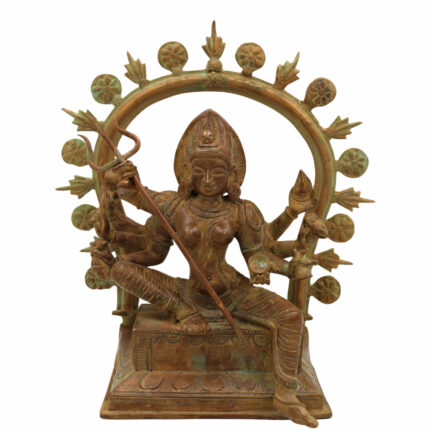 Handcrafted Panchaloha Bronze Durga Devi Idol – Mahishasura Mardini, Simhavahini Shakti, Navadurga Sculpture for Pooja & Temple,Brown, 10.5 Inch, 1 Piece