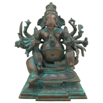 Handcrafted Panchaloha Ganesha with Siddhi and Buddhi | Riddhi Siddhi Ganapati | Chola Bronze Vinayaka Murti for Home & Temple Décor,Brown, 9.5 Inch, 1 Piece