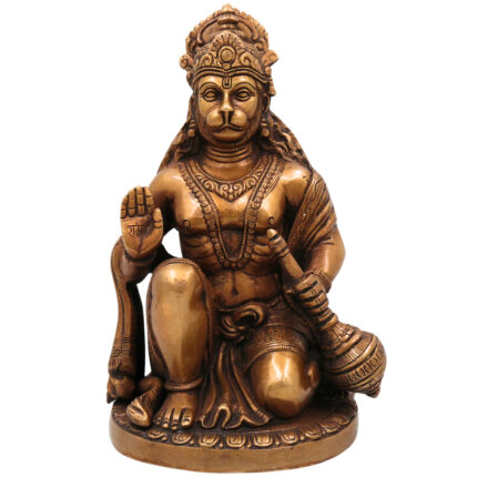 Brass Hanuman Idol – Anjaneya, Bajrangbali, Pavanputra, Sankat Mochan, Veer Hanuman Murti for Puja, Home Temple & Gifts,Gold, 4.5 Inch, 1 Piece