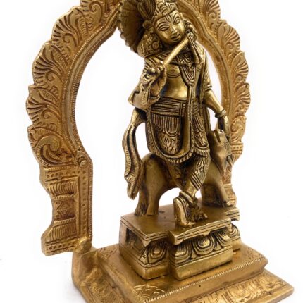 Brass Krishna Idol – Gopal Murti, Radha-Krishna Vigraham, Balakrishna Statue, Home & Temple Decor, Pooja Brass Idol,Gold, 8 Inch, 1 Piece