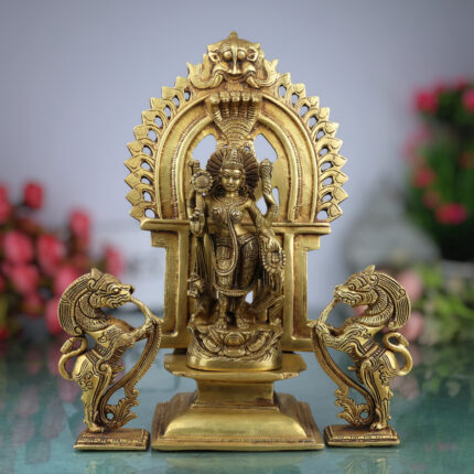 Brass Venkateshwara Balaji Idol with Prabhavali | Srinivasa Govinda Tirupati Balaji Statue for Home Decor, Temple Puja & Gifts,Gold, 8 Inch, 1 Piece