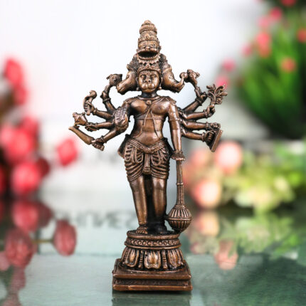 Copper Hanuman Idol | Tamra Bajrangbali Murti | Anjaneya Maruti Statue | Pavanputra Kesarinandan Ramdoot | Sankat Mochan Panchmukhi Hanuman Murti for Puja, Temple & Home Decor,Brown, 4.5 Inch, 1 Piece