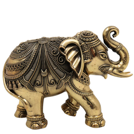 Brass Elephant Idol Gaja Murti Hathi Statue Airavata Sculpture Peetal Pital Pittal Decorative Showpiece for Home Decor Puja Gifts, Gold, 5 Inch, 1 Piece