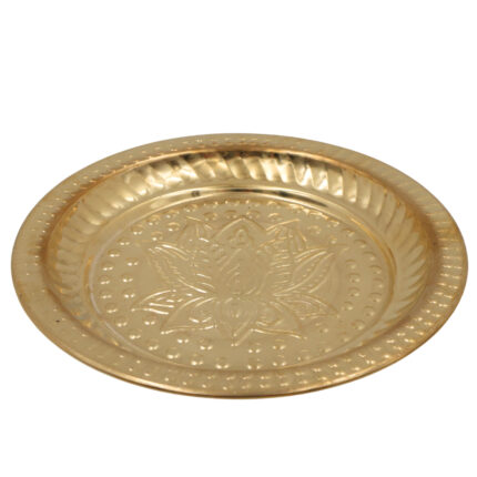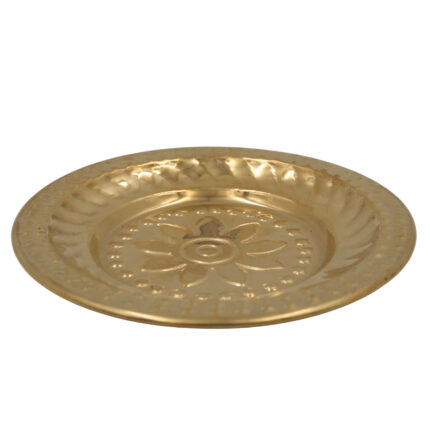 Handcrafted Brass Pooja Thali, Peetal Aarti Plate, Pital Puja Thambalam for Temple Rituals & Home Mandir, Traditional Pittal Worship Plate, Gold, 3 Inch, 1 Piece
