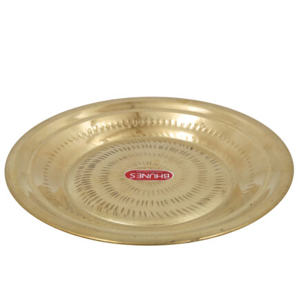 Brass Pooja Thali, Peetal Aarti Plate, Handcrafted Traditional Pital Puja Thambalam for Hindu Rituals, Temple & Home Worship, Gold, 2 Inch, 1 Piece