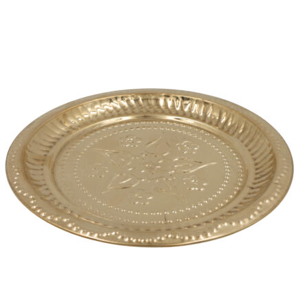 Brass Pooja Thali, Peetal Aarti Plate, Pital Puja Thambalam for Hindu Worship, Traditional Pittal Puja Plate for Temple & Home Mandir, Gold, 1 Inch, 1 Piece