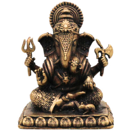 Brass Ganapati Murti Vinayaka Idol, Ganesha Statue Gajanana Vigraha for Home Decor Puja Showpiece, Brown, 2 Inch, 1 Piece
