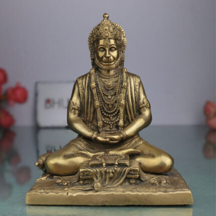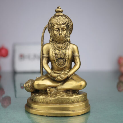 Brass Hanuman Idol – Maruti Anjaneya Bajrang Bali Pital Murti | Vayuputra Sankat Mochan Statue for Home Temple Decor & Gifts – 2.05 KG,Gold, 7.5 Inch, 1 Piece
