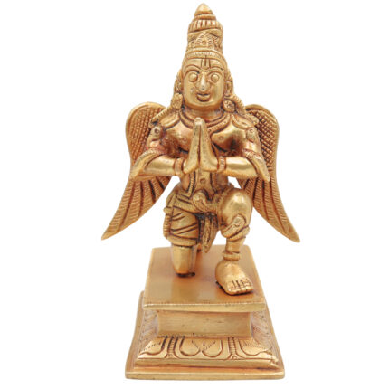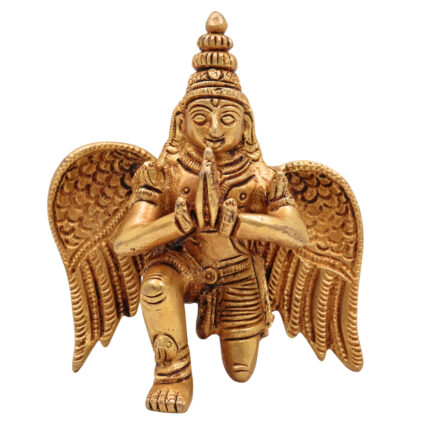 Brass Garuda Dev Idol – Vishnu Vahana | Garuthman | Pakshiraj | Suparna | Peetal Sitting Murti for Home Temple & Pooja Decor, Gold, 4.5 Inch, 1 Piece