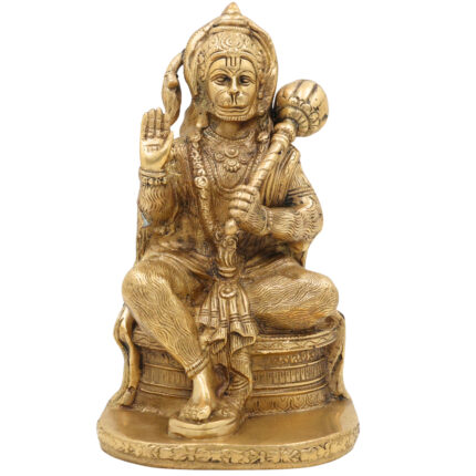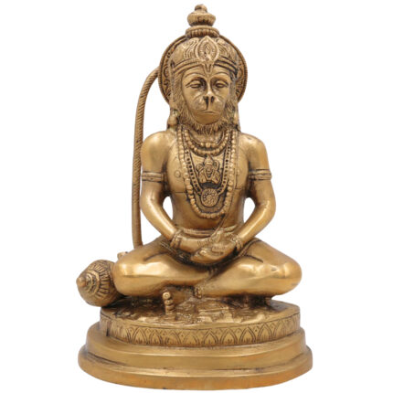 Brass Hanuman Idol – Maruti, Bajrangbali, Anjaneya, Pavanputra, Sankat Mochan Murti for Home Temple Decor & Pooja,Gold, 12 Inch, 1 Piece