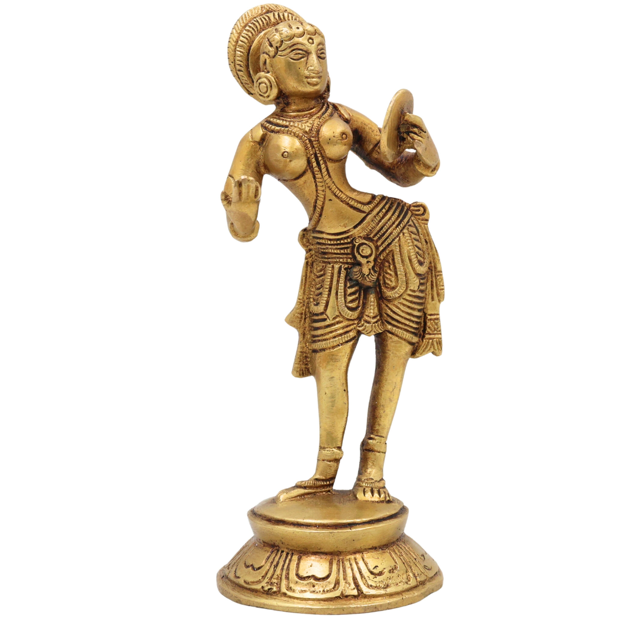 Handcrafted Brass Apsara Idol With Mirror, Peetal Devangana Murti, Pital Urvashi Sculpture, Pittal Menaka Statue