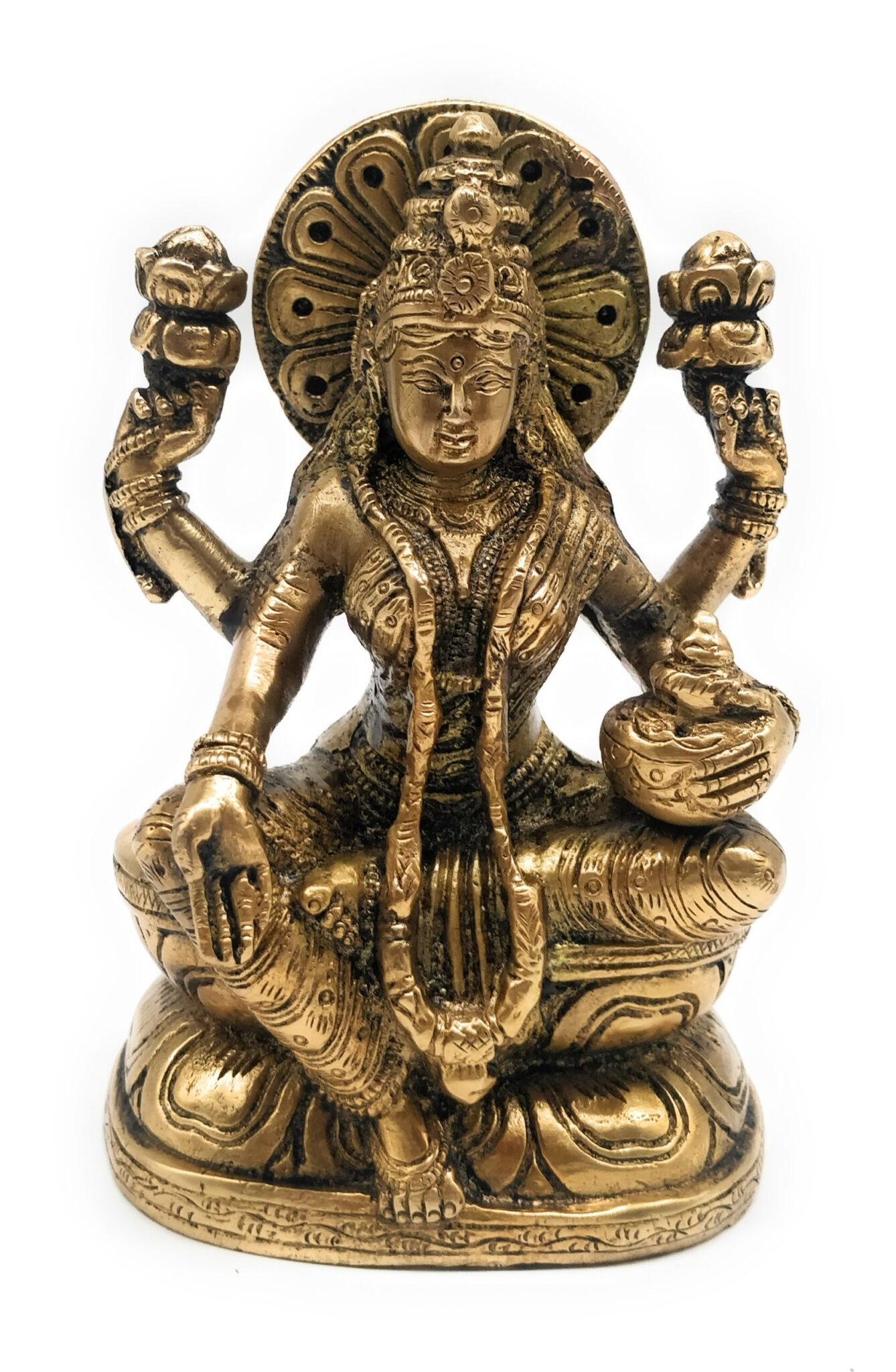 Goddess Lakshmi, also known as Laxmi, Shri, and Mahalakshmi, is revered across India as the divine force of Aishwarya (wealth) and Samruddhi (abundance). She forms the holy Tridevi with Parvati and Saraswati, and is the eternal consort of Lord Vishnu. She is known by thousands of divine names like Kamala, Indira, Padma, Ramaa, Rajya Lakshmi, Swarna Kamala, Padmapriya, Sridevi, Narayani, Bhargavi, and Ashta Lakshmi (Dhana Lakshmi, Dhanya Lakshmi, Gaja Lakshmi, Santana Lakshmi, Vidya Lakshmi, Veera Lakshmi, Vijaya Lakshmi, Aishwarya Lakshmi). Each form blesses the devotee with different kinds of prosperity and spiritual upliftment.
