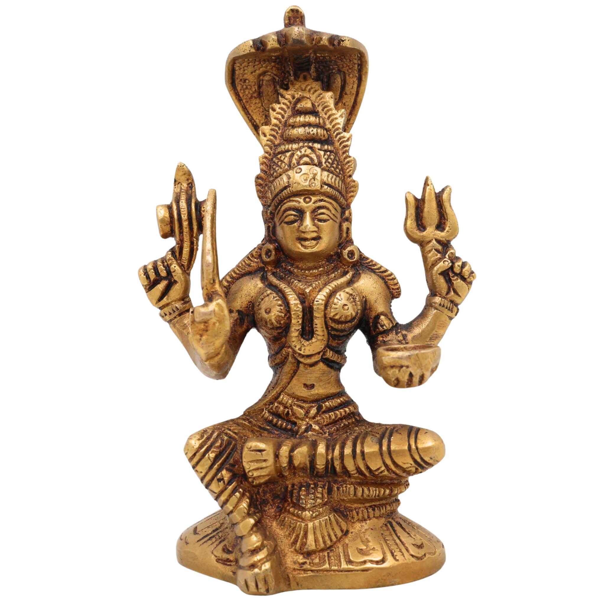 Brass Mariamman Idol, Mariyamma Devi Vigraham, Muthu Mariamman Murti, Samayapuram Amman Statue, Peetal Hindu Goddess Decor, Gold, 6 Inch, 1 Piece