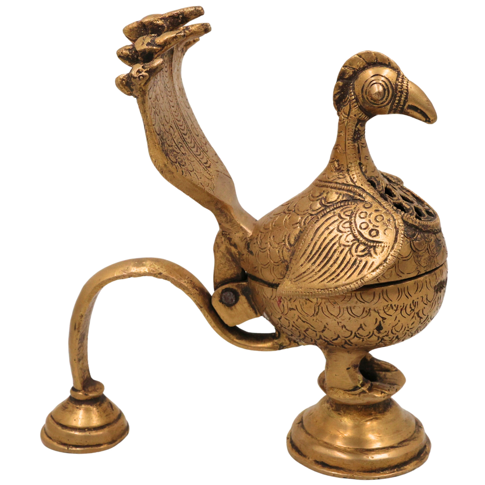 Package Contents: 1 Brass Peacock Doopa Dani Idol / Murti / Vigraha