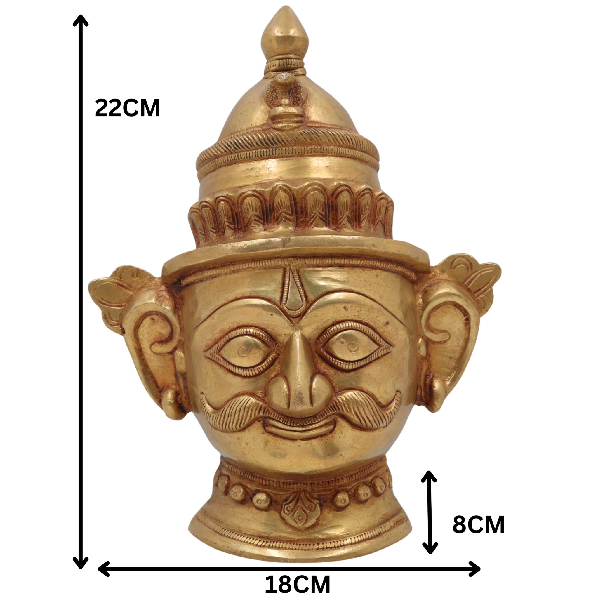 Brass Shiva Face Idol, Peetal Mahadev Mukha, Handcrafted Bholenath Head, Rudra Shankara Mask, Kailashnath Pital Statue, Gold, 9 Inch, 1 Piece