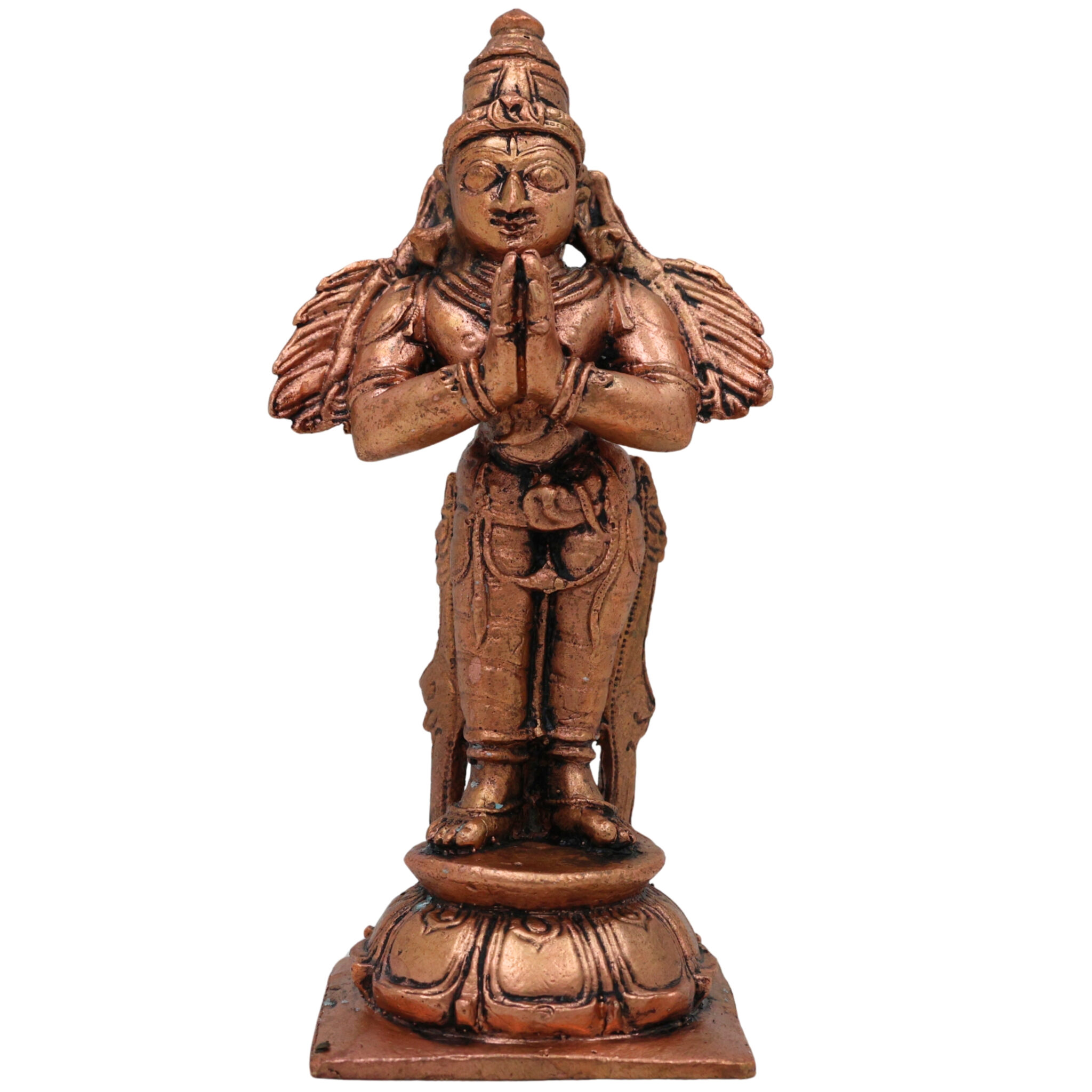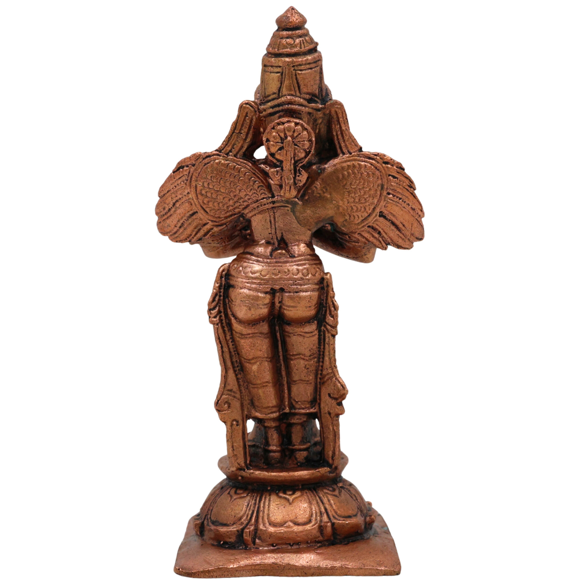 Copper Garuda Dev Idol, Tamra Garuda Murti, Vishnu Vahana Statue, Pakshiraj Garuda Devata Moorti for Pooja, Temple & Home Decor, Brown, 4.5 Inch, 1 Piece