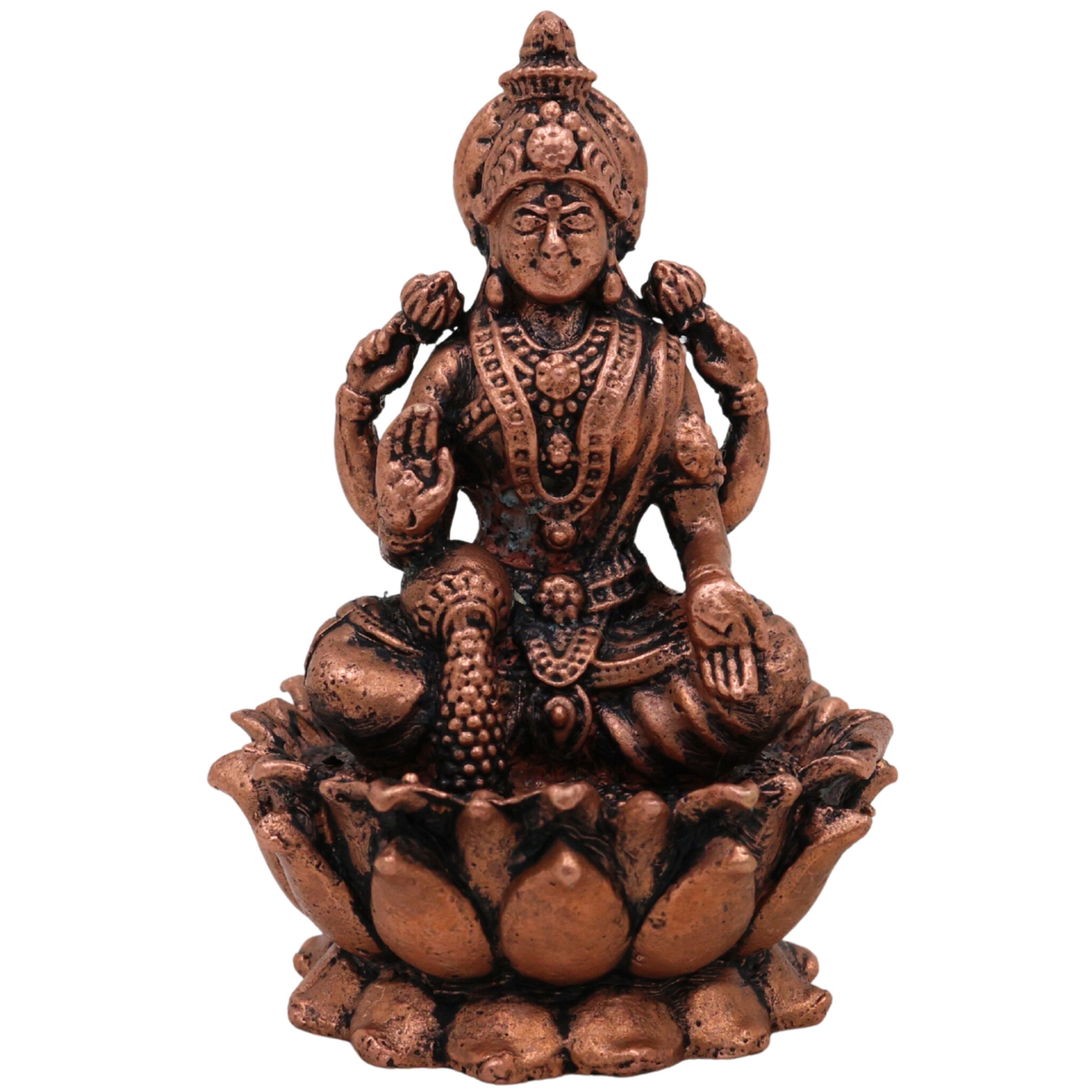 Copper Tamra Lakshmi Idol, Handcrafted Thamira lakshmi Murti, Shri Devi Mahalakshmi Vigraham for Pooja & Home Decor, Brown, 2.5 Inch, 1 Piece