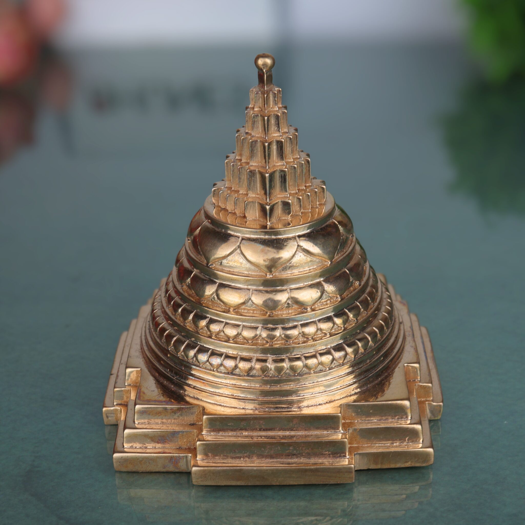 Handcrafted Bronze Shree Yantra | Sri Chakra, Shri Yantra, Maha Meru, Tripura Sundari Yantra, Panchaloha Sacred Yantra for Puja, Meditation & Home Temple, Gold, 4 Inch, 1 Piece