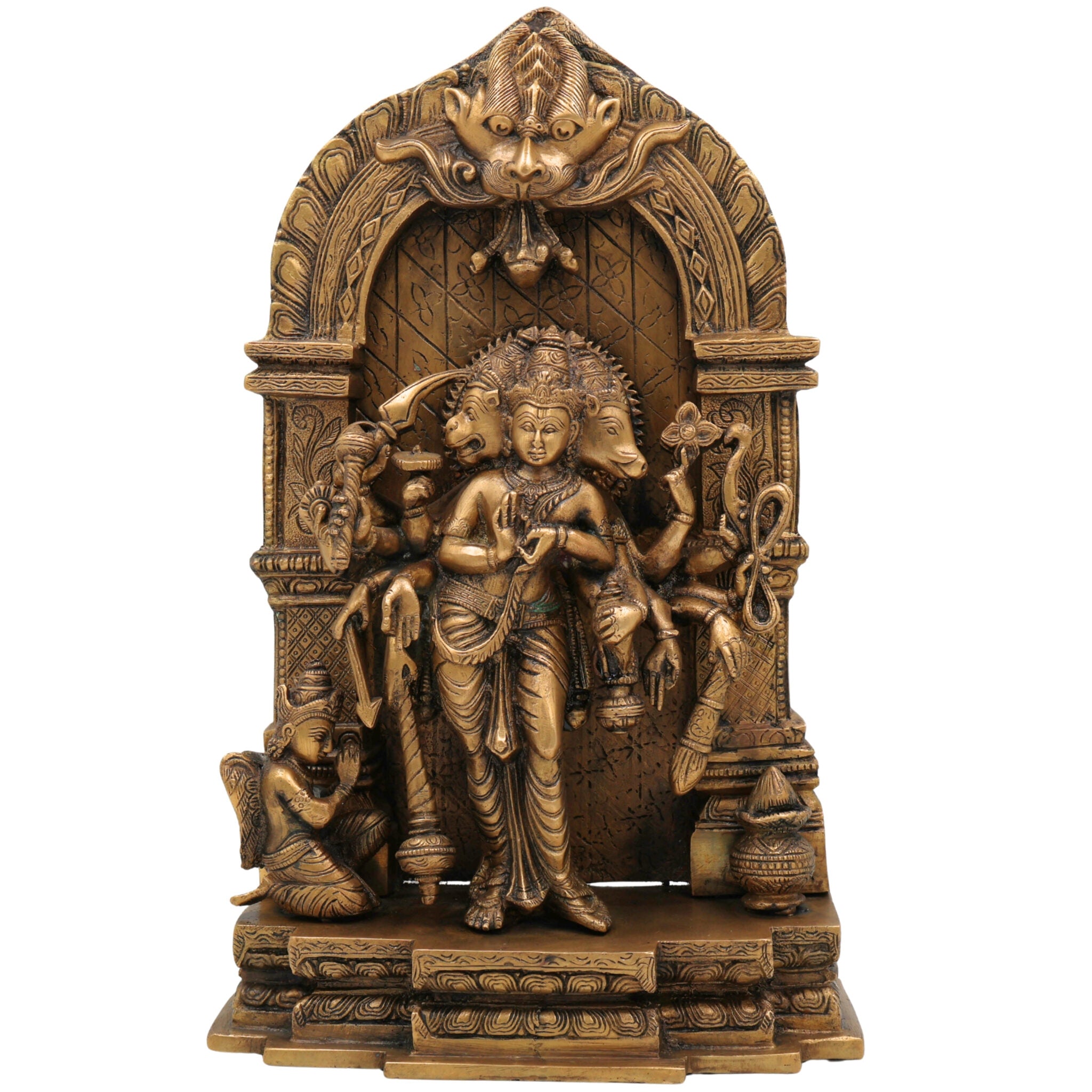 Brass Narasimha Avatar Idol with Garuda & Prabhavali Peetam – Vishnu Dashavatara Statue | Panchaloha Narasingha Murti for Puja, Home & Temple Decor