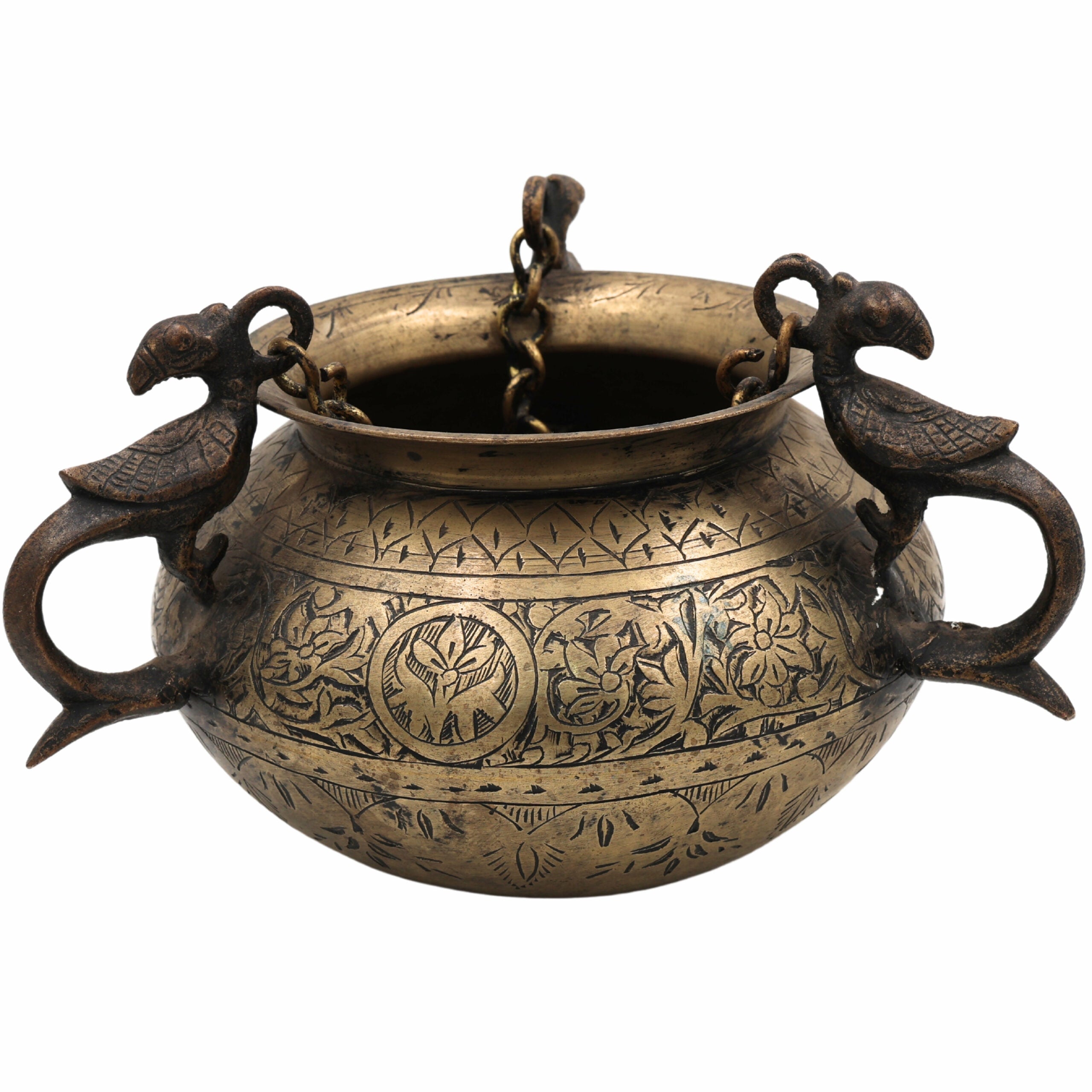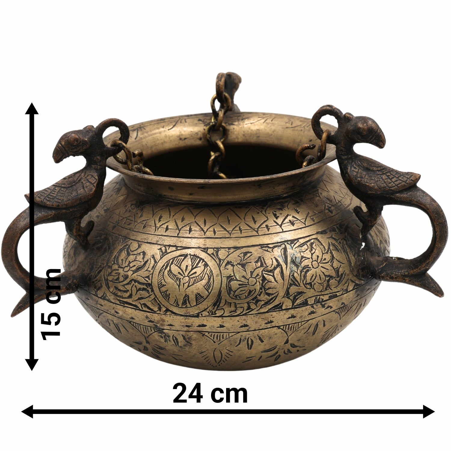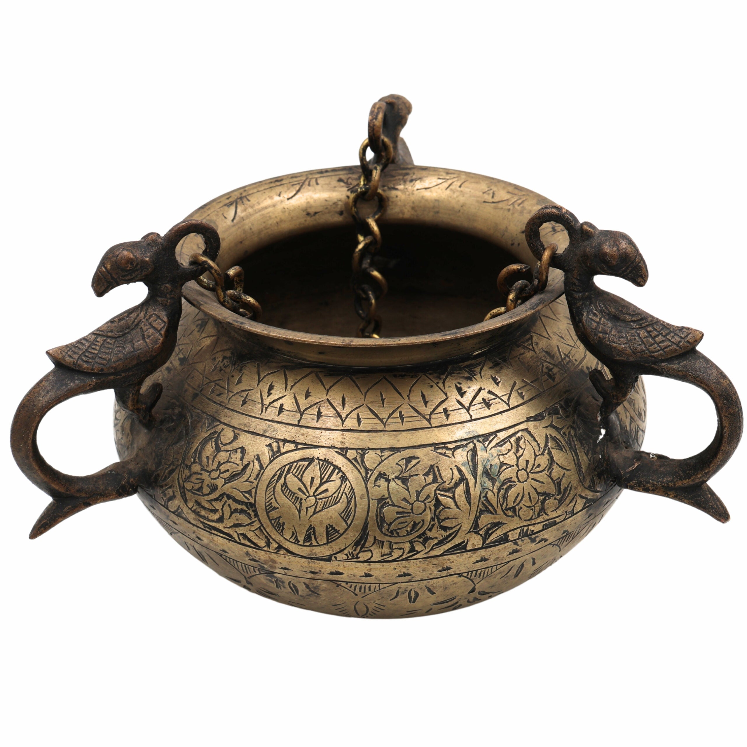 Brass Vintage Hanging Hand-Carved Pot – Antique Look Decorative Showpiece For Home & Garden
