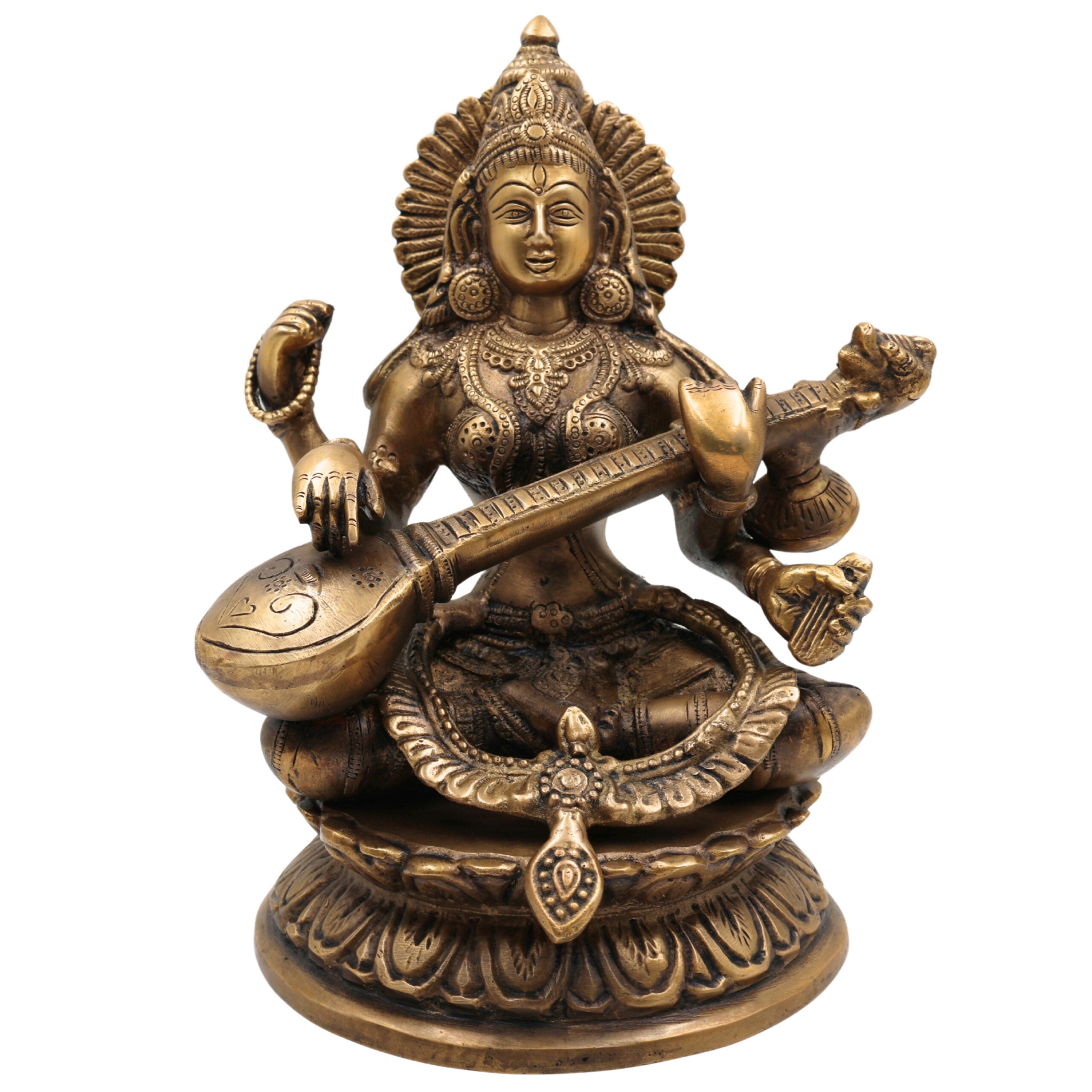 • 100% handmade and authentic brass Saraswati Idol