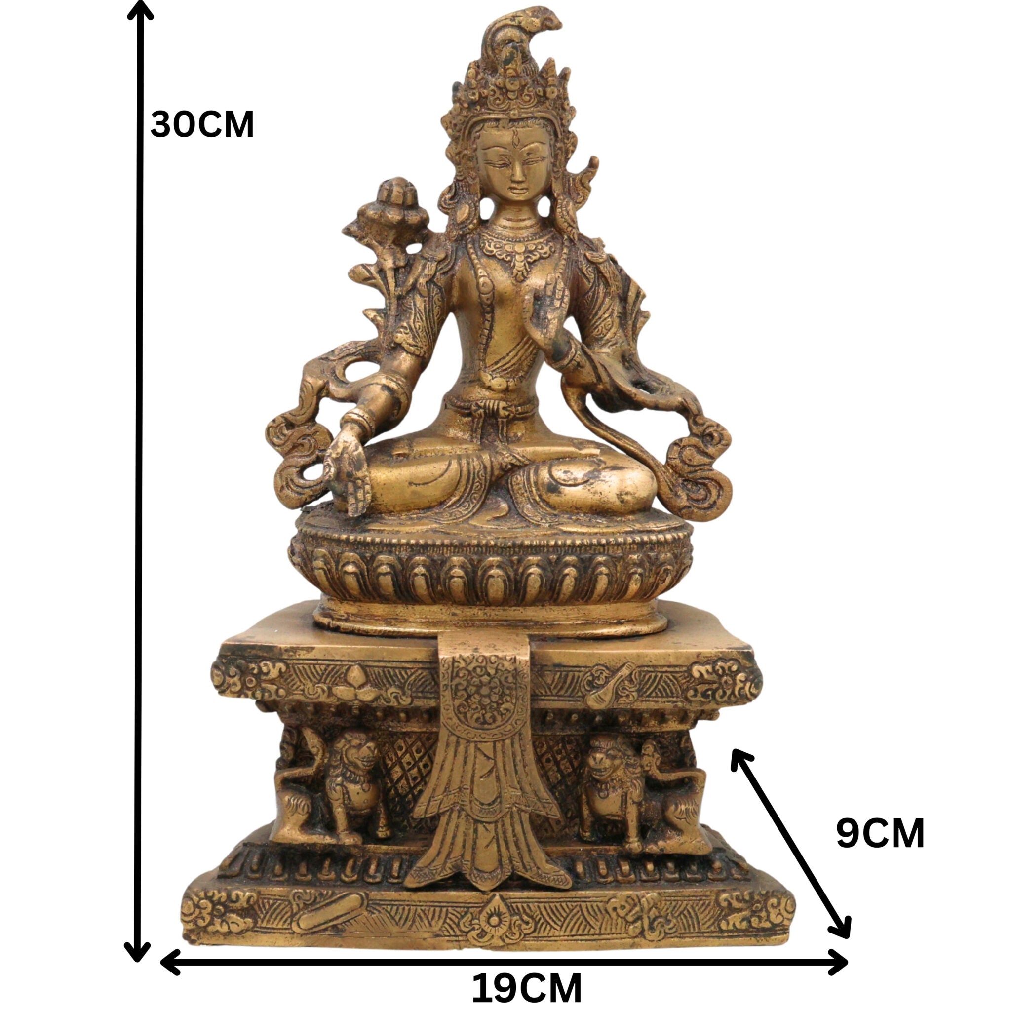 Brass Tibetan Tara Maa Idol – Green Tara | White Tara | Jetsun Dolma | Arya Tara Devi Murti | Tara Mata Statue for Pooja, Home Decor & Gifts, Gold, 12 Inch, 1 Piece