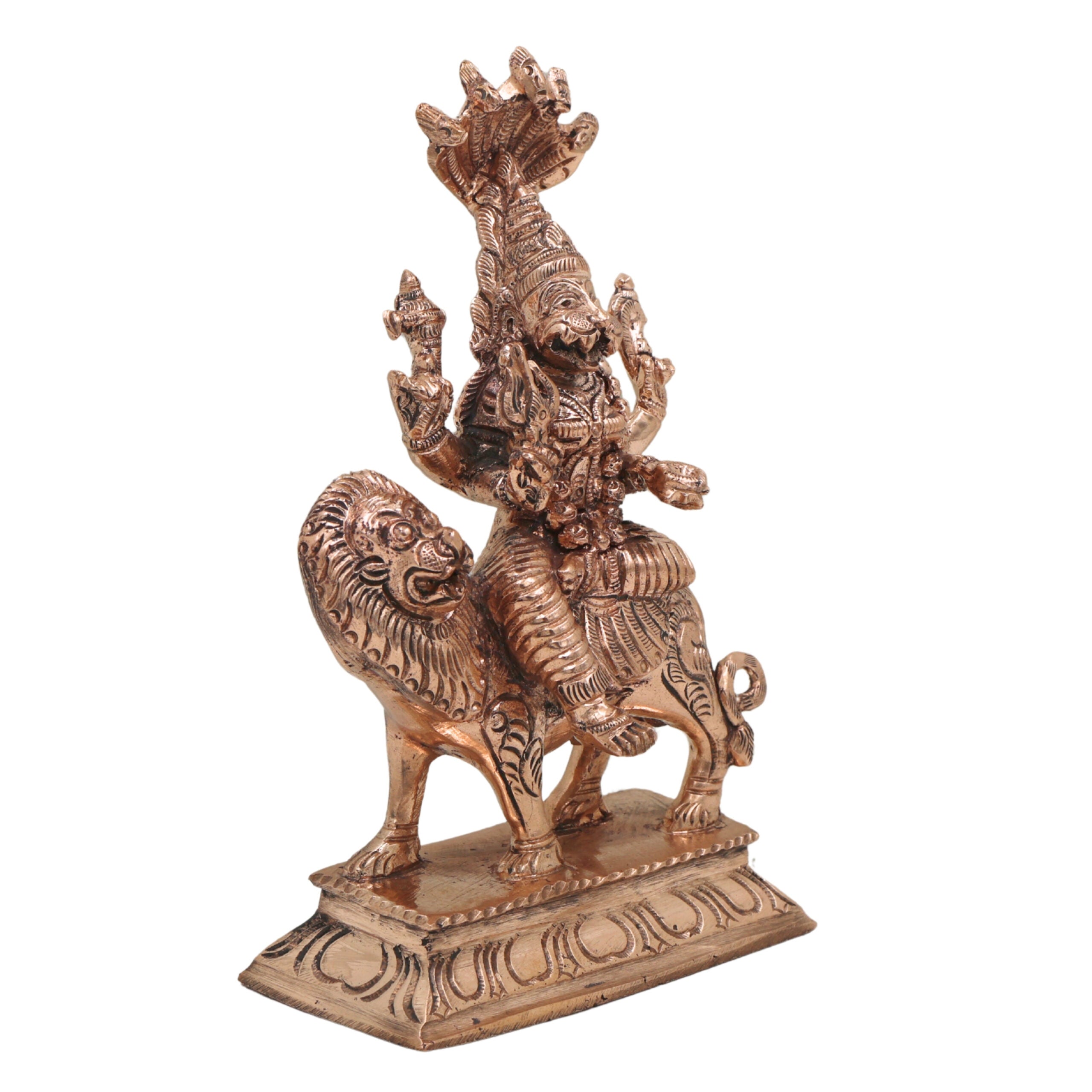 Bronze Handmade Pratyangira Devi Idol, Panchaloha Simhamukhi Statue for Temple & Home Decor | Chola Art Sculpture, Gold, 6.5 Inch, 1 Piece