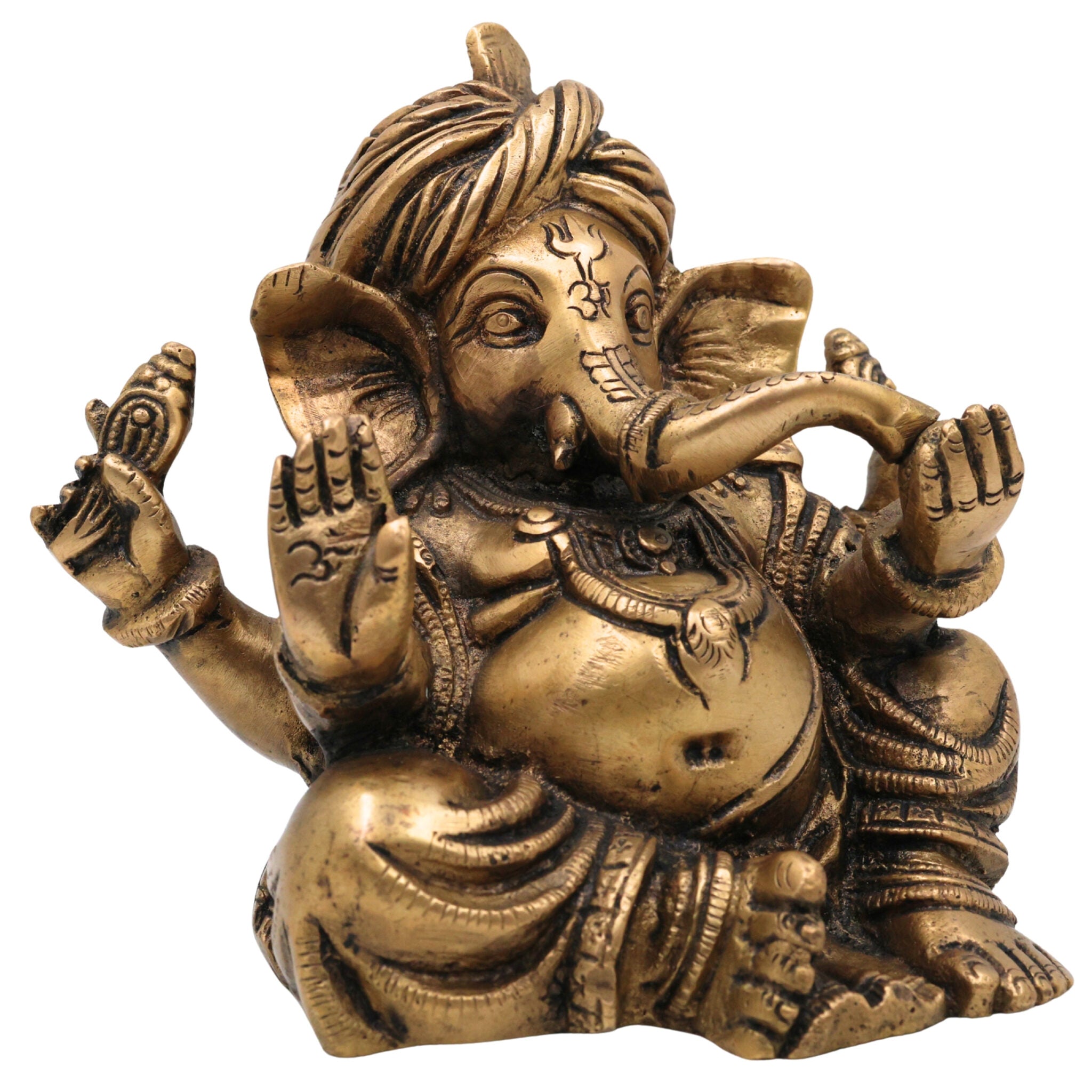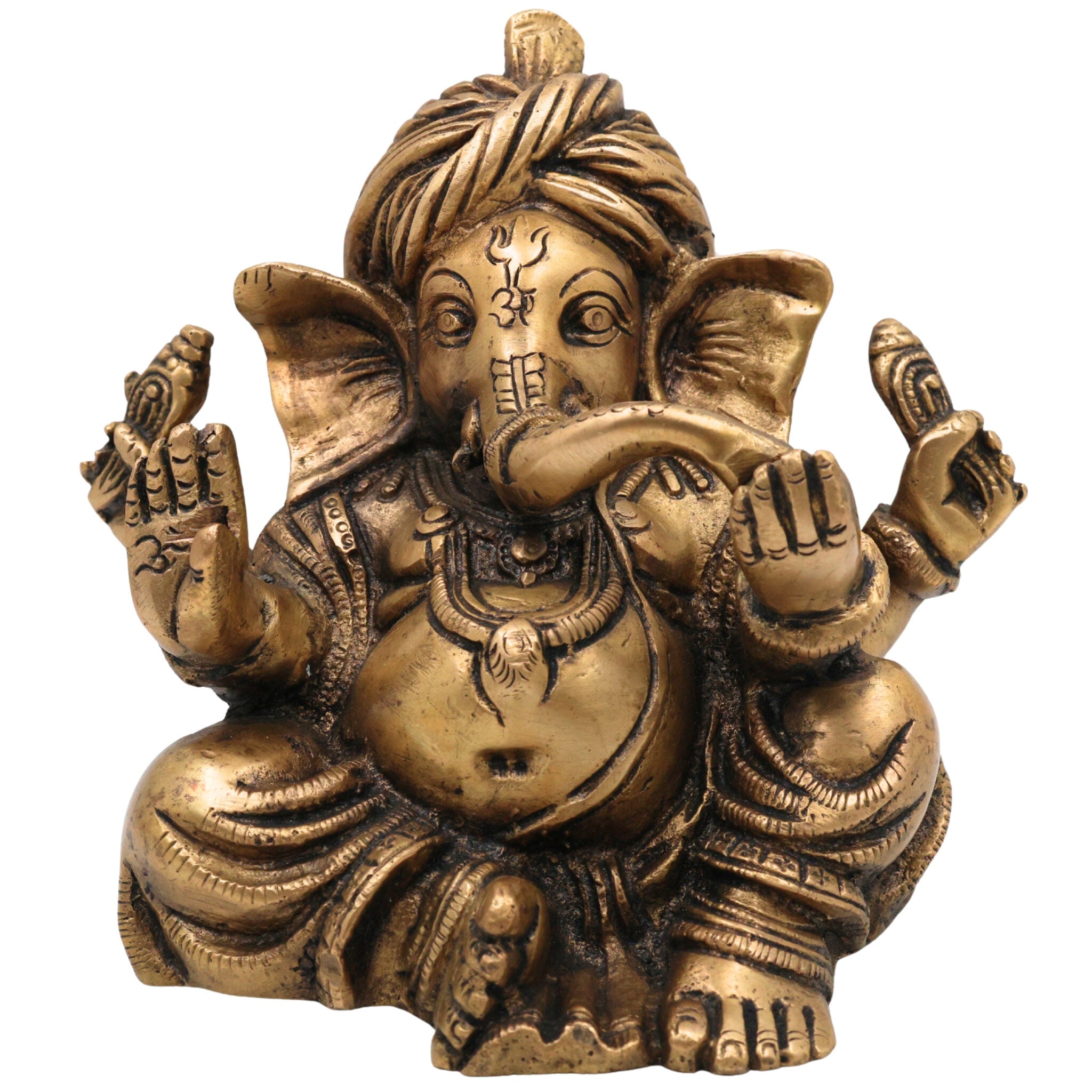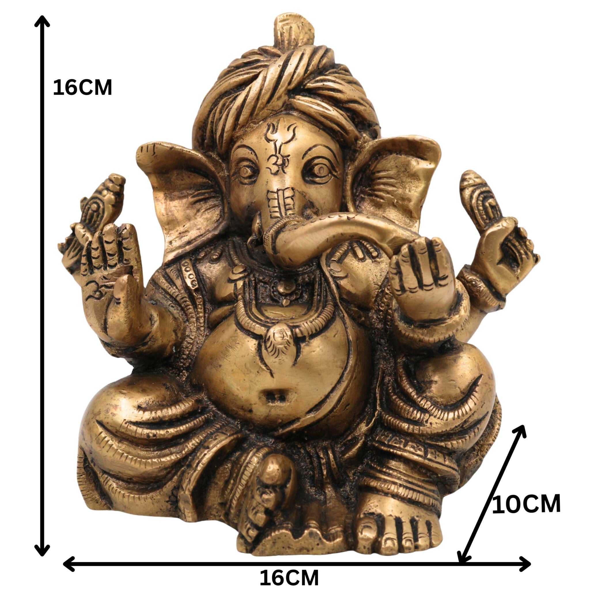 Handcrafted Brass Ganpati Idol for Home Temple | Vinayaka Murti | Peetal Ganesha Statue | Vighnaharta Pital Ganapati for Pooja & Decor,Gold, 6.5 Inch, 1 Piece